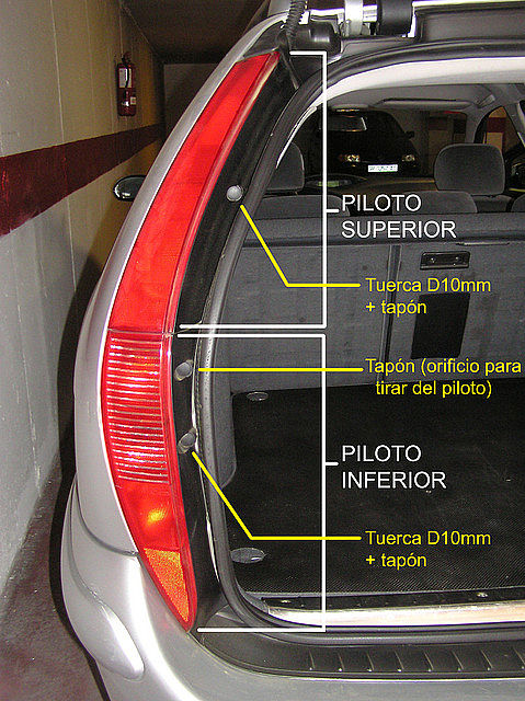 8º Ya podemos sustituir las lámparas estropeadas. En este caso, lámpara de posición y freno (piloto superior).