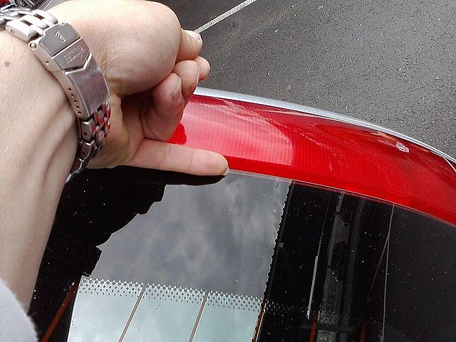 Esto es para que el filo del piloto se quede después bien pegado al filo de la aleta. Si no hacemos esto, se quedará despegado, quedará horrible y rozará después con el portón al cerrarlo. Lo digo por experiencia, que me ha tocado desmontar 4 veces hasta que he dado con la tecla, ya medio loco.