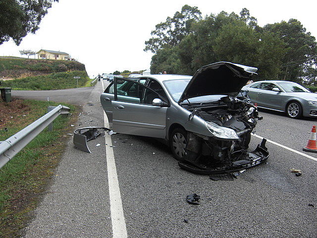 A los 15´de viaje y por una carretera de doble sentido,en un punto (x) me encontré con un vehículo que pretendía hacer un giro a su mano izquierda para coger una carretera en dirección a su domicilio,hasta ahí bien,señalizó adecuadamente .......yo veo la situación ,desacelero lo justo ante la duda ,lo veo todo ok,vuelvo a acelerar para seguir mi camino y que el otro pasase cuando lo hubiera rebasado....cuando de pronto al acercarme al vehículo ,lejos de quedarse parado,salió como si no viniera nada ,resultado--------->BLOOOOOOOOOM !!!, el miedo que pasamos en un instante fue indescriptible,un grito "TEREEEE",te encuentras bien?,estás bien?sí (lágrimas ella,yo debía aguantar....) , tú?,yo también bien ,ella salió del coche por si misma ,miro al otro lado buscando "al culpable" y veo a una chica con la cabeza apoyada contra el volante de su vehículo sangrando por la cara en abundancia,enseguida veo que yo también estoy bien de verdad ,no me faltan las piernas(miedo),la cara también está en su sitio BUFFFFF!!!,todo ok,salgo pitando hacia la chica ,le pregunto si está bien,y ante mi sorpresa ella me responde que sí (que maravilla,estaba bien),al final no pasó nada ,salvo contusiones normales debido al trompazo tan tremendo para todos y a ella un corte en la cara ,que lo solucionaron los cirujanos y los vehículos que quedaron muy dañados.