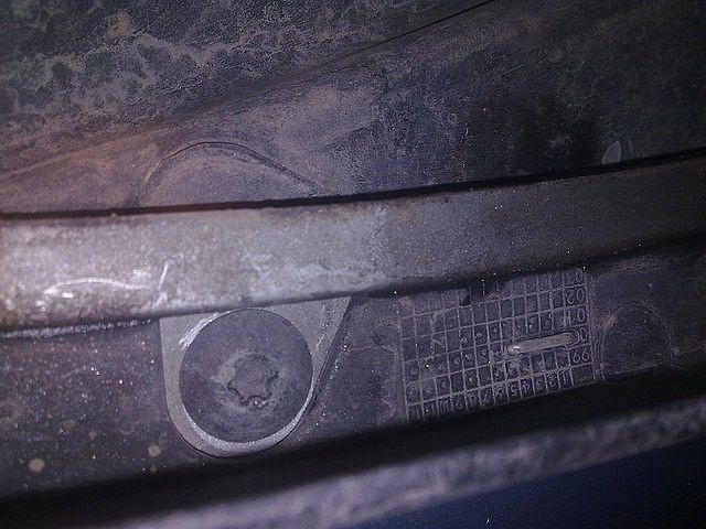 Bueno voy a intentar resumiros en breves pasos como hacer para cambiar las bombillas de los antinieblas, intentare colocar bien las fotos. Paso 1: Hay que ponerse debajo del coche y en los extremos laterales de la parte baja del paragolpes encontrareis este tornillo de la foto, hay que quitarlo y doblar un poco el paso de rueda hacia etras, tranquilos que cede, no se rompe