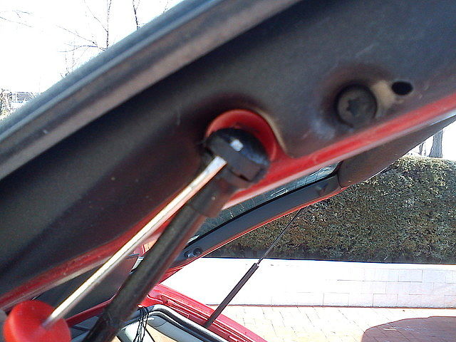 Ahora se quitan los amortiguadores de origen, tienen un sistema distinto, pero es muy facil de sacar tb, por el único sitio qeu se ve que se puede meter la punta del destornillador, se mete, se hace palanca, y sale una especie de anilla abierta.