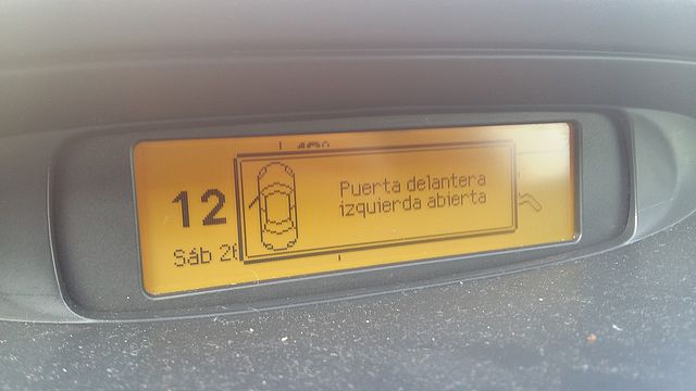 A ese coche parece le han cambiado el cuadro por uno que no es exactamente igual al que tenia, hay un led que indica puerta abierta en algunos modelos el dibujo es un coche con las 4 puerta abiertas visto desde arriba.