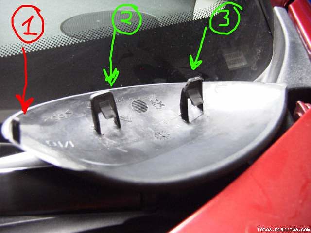 si metes un destornillador entre la tapa y el retrovisor, se puede levantar ésta un poco. Siempre con cuidado para no rallar nada con el destornillador, ni levantar demasiado para no romper las pestañas (a mi se me ha roto una pestaña del retro del copiloto).
