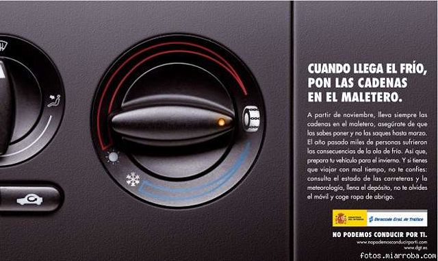 Ahora que ya empezamos con las temporadas de heladas y nieves, os recomiendo que probeis a poner las cadenas tranquilamente en el garaje, donde estareis calentitos, o acercaros a cualquier sitio donde las podais poner tranquilamente (un parking de un centro comercial un domingo que haga bueno por ejemplo) aunque sea para saber como funcionan y como se ponen. Y echad un vistazo a esta pagina de la DGT