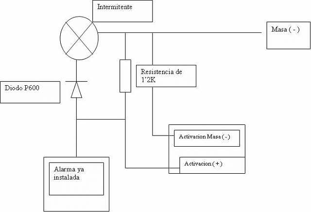 Ahora bien en el intermitente derecho es donde vais a tener que poner el diodo p600 y la resistencia de 12K de la siguiente forma