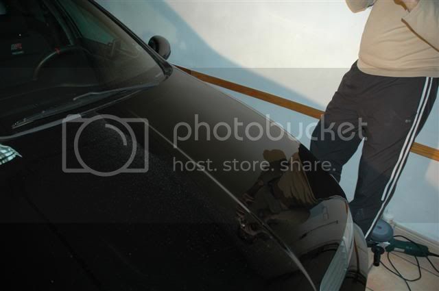 Como se ve quedaban arañazos localizados y había q ir a por ellos, pero quedaba libre de swirls y sin hologramas aparentes. Aquí la Metabo se me paró y ya no quiso arrancar, así q eché mano de mi orbital Flex 3401 para el resto del coche y me las tuve q ingeniar para sacarlo adelante lo mejor posible. Puesto q las orbitales tardan más en romper los polish q las rotativas, necesitaba un polish q cortara mucho y relativamente rápido. Además, q el acabado fuera relativamente bueno para una vez corregidos los swirls dar una pasada de acabado con un glaze y luego ya encerar. De entre todos, el q mejor me funcionó fue el Farécla G3, q es muy buen polish pero un poco especial en su aplicación ya q se ha de usar húmedo y se seca muy rápido en la esponja, saturándola y sacando polvillo por todas partes. Para corregir un poco el problema y mejorar el acabado, se usó mezclado junto con un polish de acabado de 3M (Ultrafina) q tiene buena lubricación y acabado. Esto cortó mucho el secado del G3 y el acabado era muy bueno, aunque algunas zonas requerían 3-4 pasadas con esponja naranja o de corte.