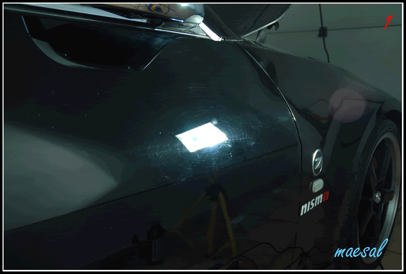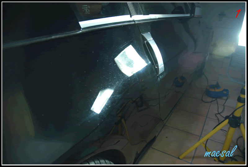 Ya había leido algún reportaje donde veía q los japoneses deportivos solían tener poco espesor y este fue uno de los casos. En ese punto decidí eliminar swirls pero no ir a por arañazos para no comprometer la capa de laca. Tras hacer las pruebas pertinentes, se comprobó que una fase de pulido y otra de acabado, ambas con rotativa, lo dejaba muy bien y libre de hologramas.