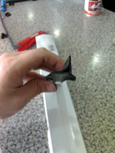 Después, con un destornillador plano fino y pequeño, sacamos los capuchos de los extremos. No estan pegados, si no que van a presión fijados por una pequeña grapa interior que cede a la presión. Tras extraerlos sacamos los derivabrisas o embellecedores, que al quitar los capuchones de los extremos salen solos deslizándose solos: