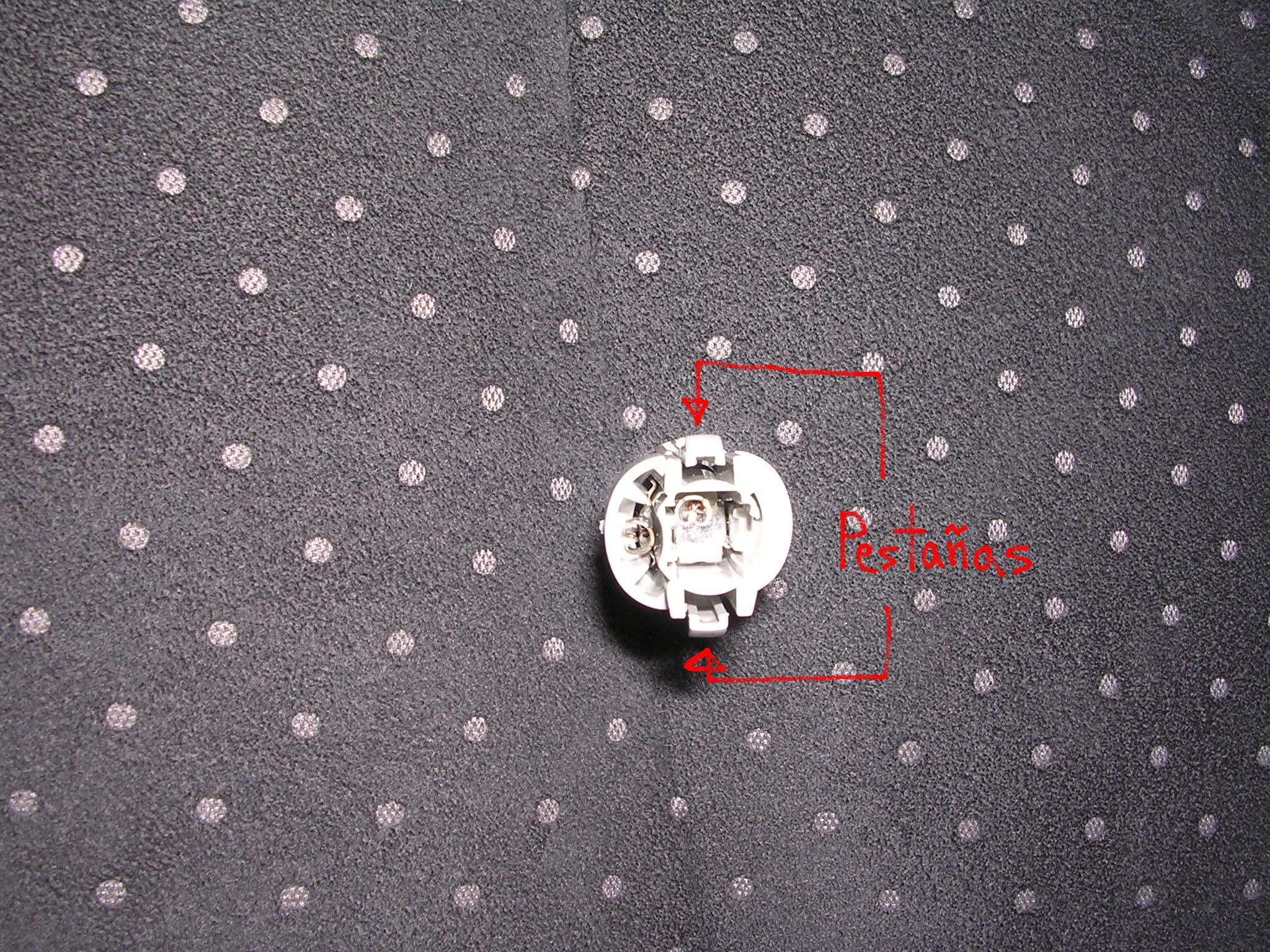4º Observar bien el casquillo metiendo la cabeza donde va la batería. Se estira de los cables a la vez que con un destornillador o algo se presiona las patillas hacia su eje, una vez ceda un poco, se hace lo mismo con la otra patilla.