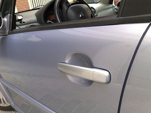Supresión del bombín de la cerradura de la puerta del conductor. Simplemente está tapada. En el caso de necesitarla, haciendo un poco de fuerza quitamos el protector y vemos el bombín:
