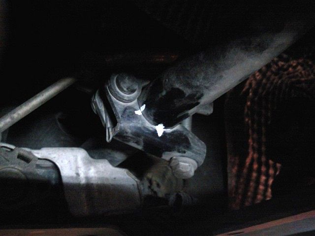 Vale la pena, apenas estuve media hora y me costó poco más de 10 . Una vez arriba localizamos la pieza en la barra estabilizadora, para lo cual no hace falta desmontar ninguna tapa, tal como muestra la foto.