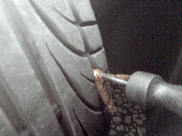 La rueda de mi C5 I con una puntilla clavada hasta el fondo, la grande por cierto, jejeje...
