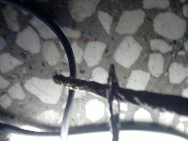 Una vez inflada la rueda cogeremos unos alicates de corte o una tenazas y quitaremos la puntilla o lo que sea, en este caso una puntilla ok: