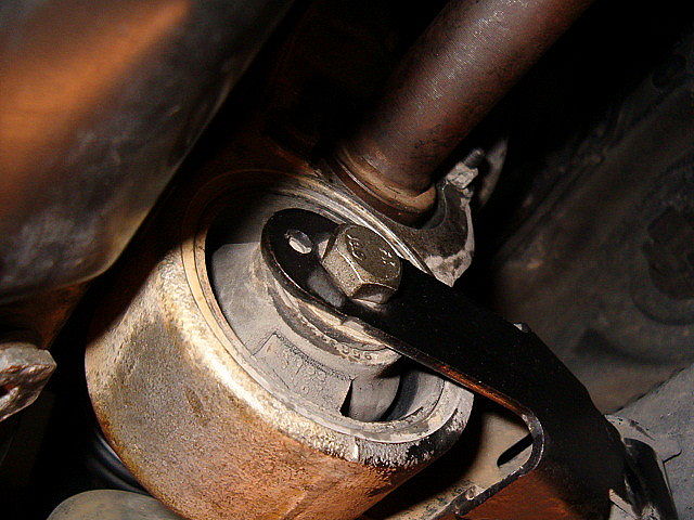 Una vez retirada la tuerca, podemos aflojar las tuercas del rodamiento que está alojado en el soporte anti-par del motor de esta transmisión derecha. La transmisión izquierda NO lo lleva.