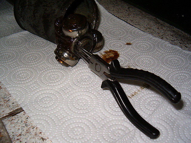Ahora vamos a desmontar la articulación abriendo la arandela muelle con unos alicates de punta.