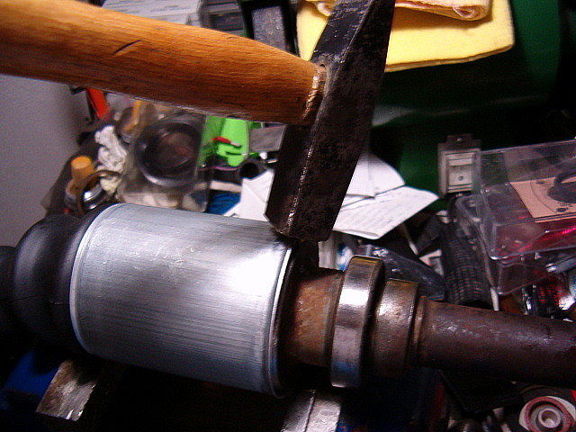 Ahora vamos a desmontar y "recuperar/cambiar" los fuelles de esta transmisión, para ello abrimos, como si de una lata se tratara, la "chapa" que está remachada sobre